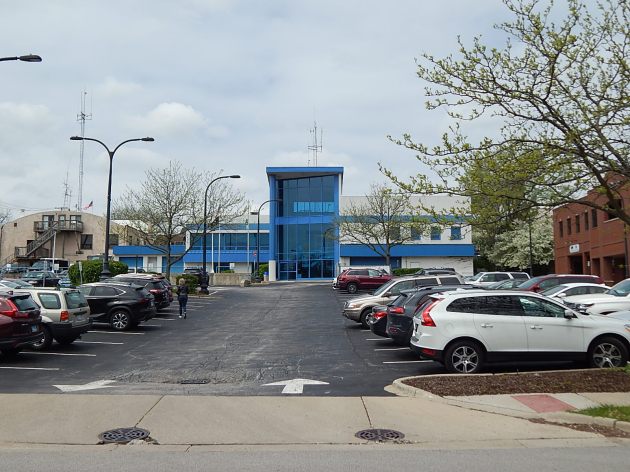 This new public library adds insult to injury. Witness previous desecration of the townscape. This is the police station just off the historic shopping district and across the street from more of the homes described above.