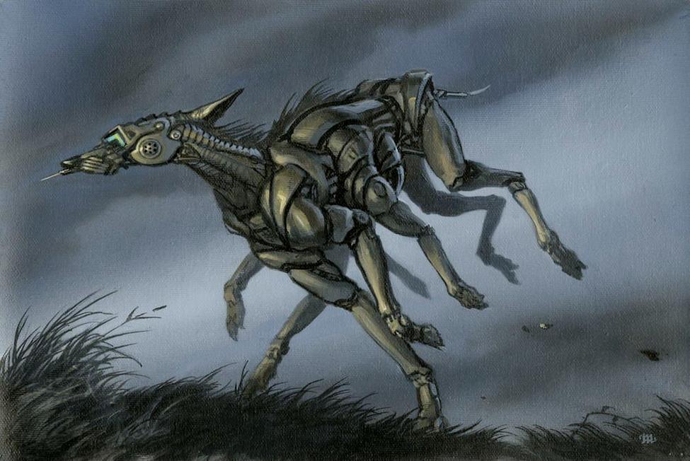 In fireman Guy Montag’s world, firemen burn outlawed books and where people hid them. The firehouse ‘dog’, a robotic beast, is an enforcer for the state. If you do not follow society’s rules, the Hound is unleashed. It tracks down and kills book readers using stored information about individuals. The Hound catches its prey and then injects it with lethal drugs.