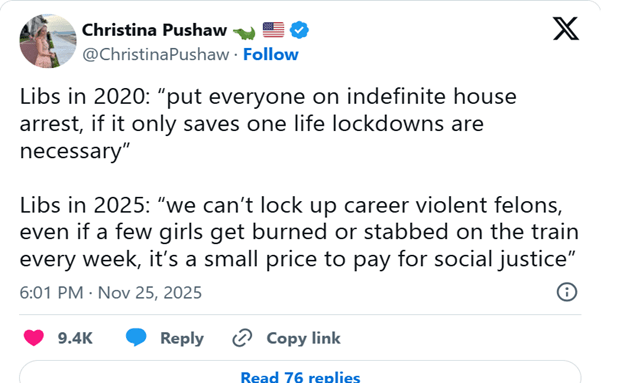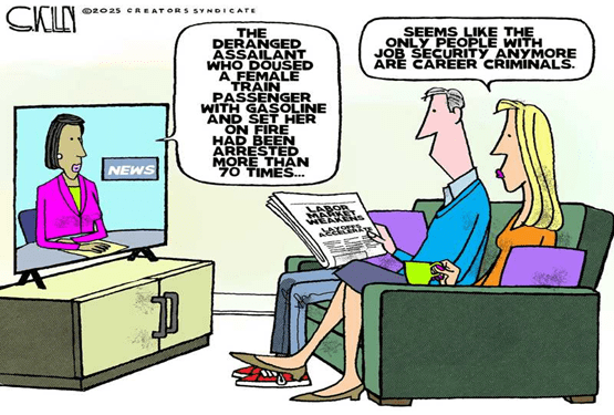 Do you go along with the package thinking of the [John] Rawlsian theory of ad hoc justice that, for example, releases someone arrested 40 times, is not considered a “criminal” because of their minority status, and is released by a judge back onto the street where he sets a woman on fire?