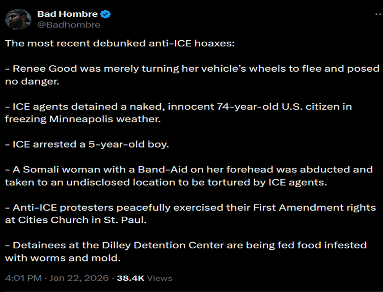 Filed under 2026 Current Events, Culture, Immigration, Insurrection, media, Political Commentary, Politics, Progressivism Tagged with character, culture, democrats, deportations, Globalism, ICE, Immigration, Jacob Frey, Keith Ellison, minneapolis, news, politics, progressivism, The Left, Tim Waltz, Trump