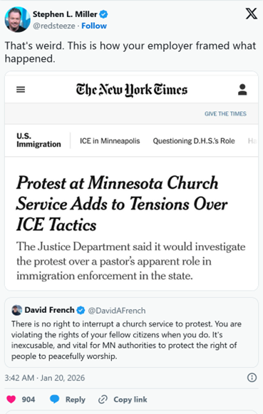 “Agitators aren’t just targeting our officers. Now they’re targeting churches, too,” the U.S. Immigration and Customs Enforcement agency stated. “They’re going from hotel to hotel, church to church, hunting for federal law enforcement who are risking their lives to protect Americans. (Emphasis mine.)