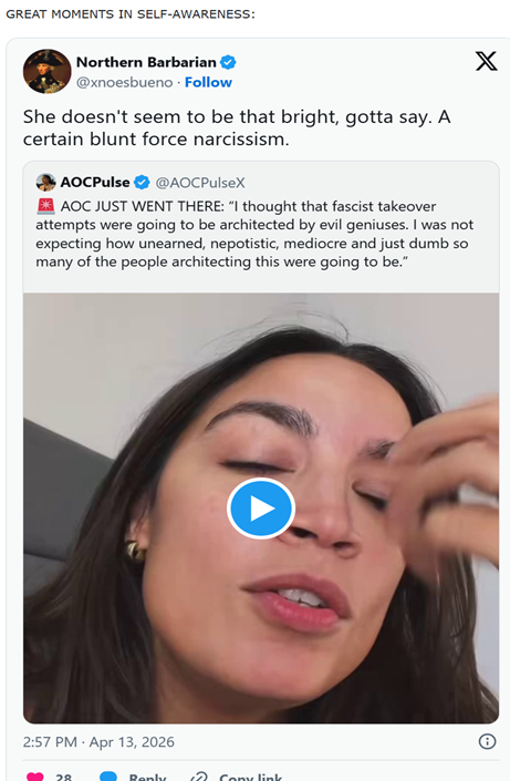 Those with attention-seeking main character syndrome include left-leaning cosplayer Christians (James Talarico, David Brooks, and David French to name a few ), politicians (Gavin Newsome, J.B. Pritzker, Tim Walz, Barack Obama, and Jasmine Crockett to name a few) and federal and supreme court justices who want to be seen as heroes resisting the Trump administration. These and more are promoted on MS-13 (MS NOW), the NYT, and other propaganda outlets.