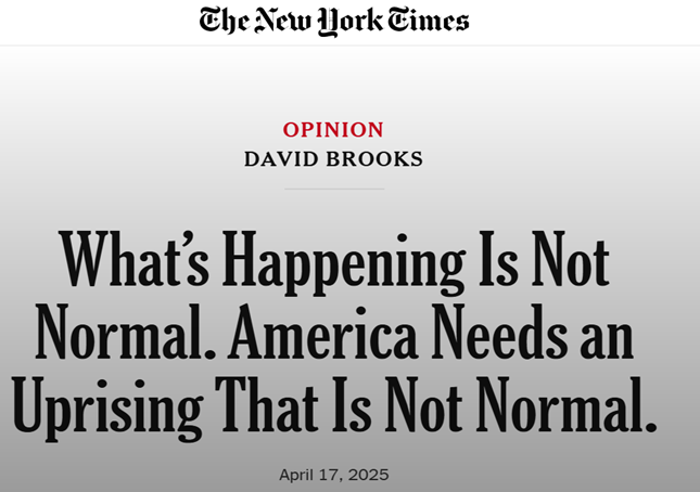 Columnist David Brooks of the NYT wrote an opinion column openly and explicitly called for a mass uprising alluding to a Communist revolution.