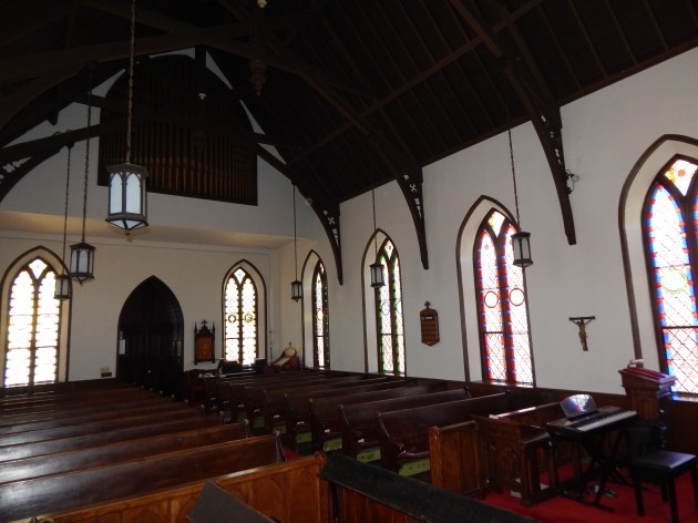 “Front and center was a large wing pulpit. Three large minister chairs were behind it along the choir loft. A piano on the left and an organ on the right flanked the platform.