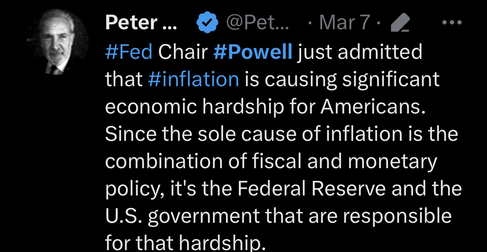 It’s not just the economic czars of the U.S. Treasury and Fed that screw things up. Congress not long ago passed spending bills with the Orwellian names “Cares Act” and “Inflation Reduction Act.” Both Acts have added to a massive deficit that is financed by the Fed’s creation of new money which increases the money supply and ergo inflation, the “price gouging” culprit that “price controls” would only exacerbate because nothing happens in isolation.