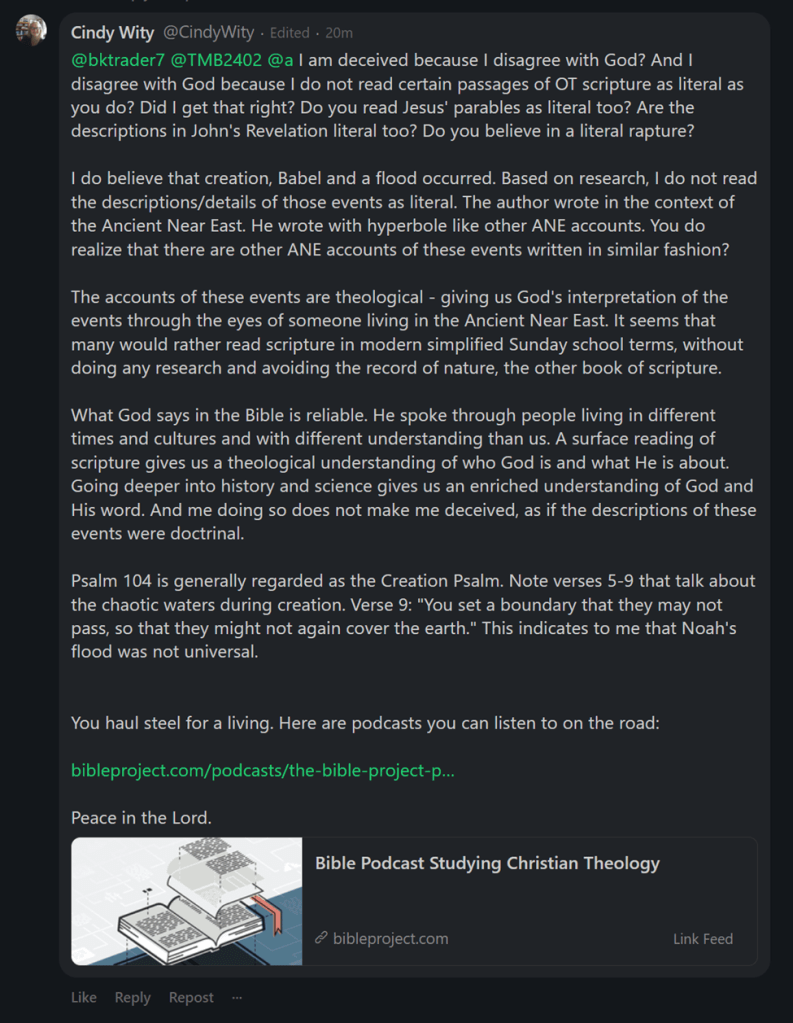 I’ve seen the binary thinking defense mechanism employed by Christians. Though it comes across as holding fast to the faith and Sola Scriptura, faith vs. science messaging reduces the supposed conflict to “us vs. them” binary thinking which allows no quarter for God’s revelation in nature as revealed by science. Yet, God has revealed himself in both scripture and nature. Science is a tool for understanding God’s revelation of Himself in the physical world.