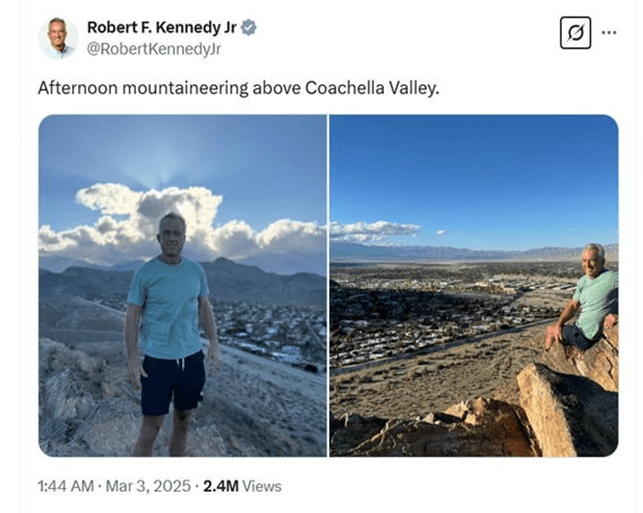With the news that mRNA vaccinated beef, dairy, eggs, and poultry are already in the food supply, some are demanding to know where our Secretary of Health is. You’ll be pleased to know he’s practicing self-care with long walks in the mountains, while currently reposting advice from the CDC.