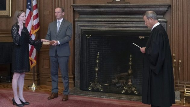 On Tuesday Oct. 27th, 2020, following a private ceremony in the Supreme Court’s East Conference Room, Judge Amy Coney Barrett officially became Justice Barrett. Chief Justice John Roberts administered the Judicial Oath to Barrett, as husband Jesse held the family Bible. Justice Barrett – wife, mother of seven, adoptive parent, lawyer, circuit judge on the U.S. Court of Appeals for the Seventh Circuit and, academic – became the ninth member of the Supreme Court.