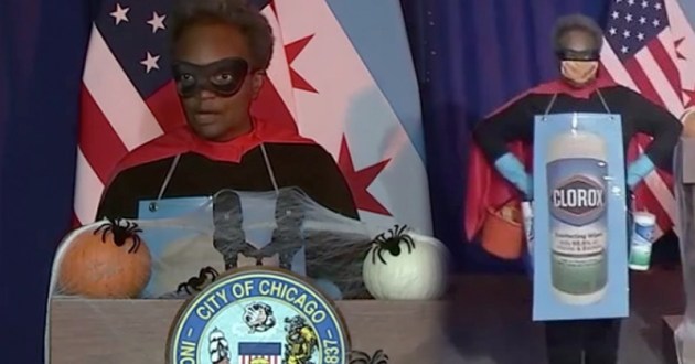 In the shadow of Gov. Pritzker, Mayor Lightfoot, on Oct. 1, 2020, offered her own tour de force – subjecting the Coronavirus to a triple threat of her intersectional power in super hero fashion. Mayor Lori Lightfoot and Dr. Allison Arwady, commissioner of the Chicago Department of Public Health, donned “Rona Destroyer” costumes for a pre-Halloween press conference.
