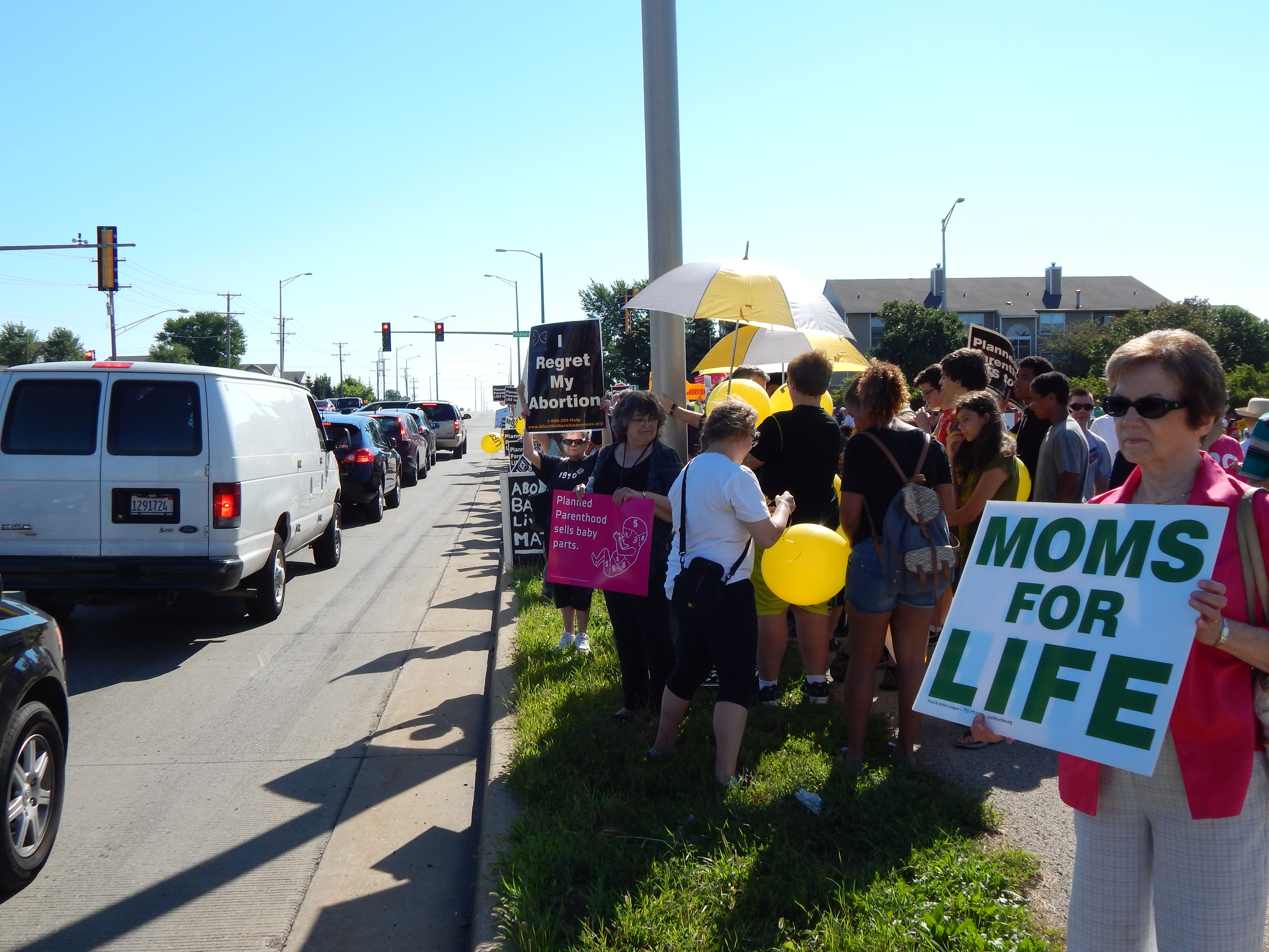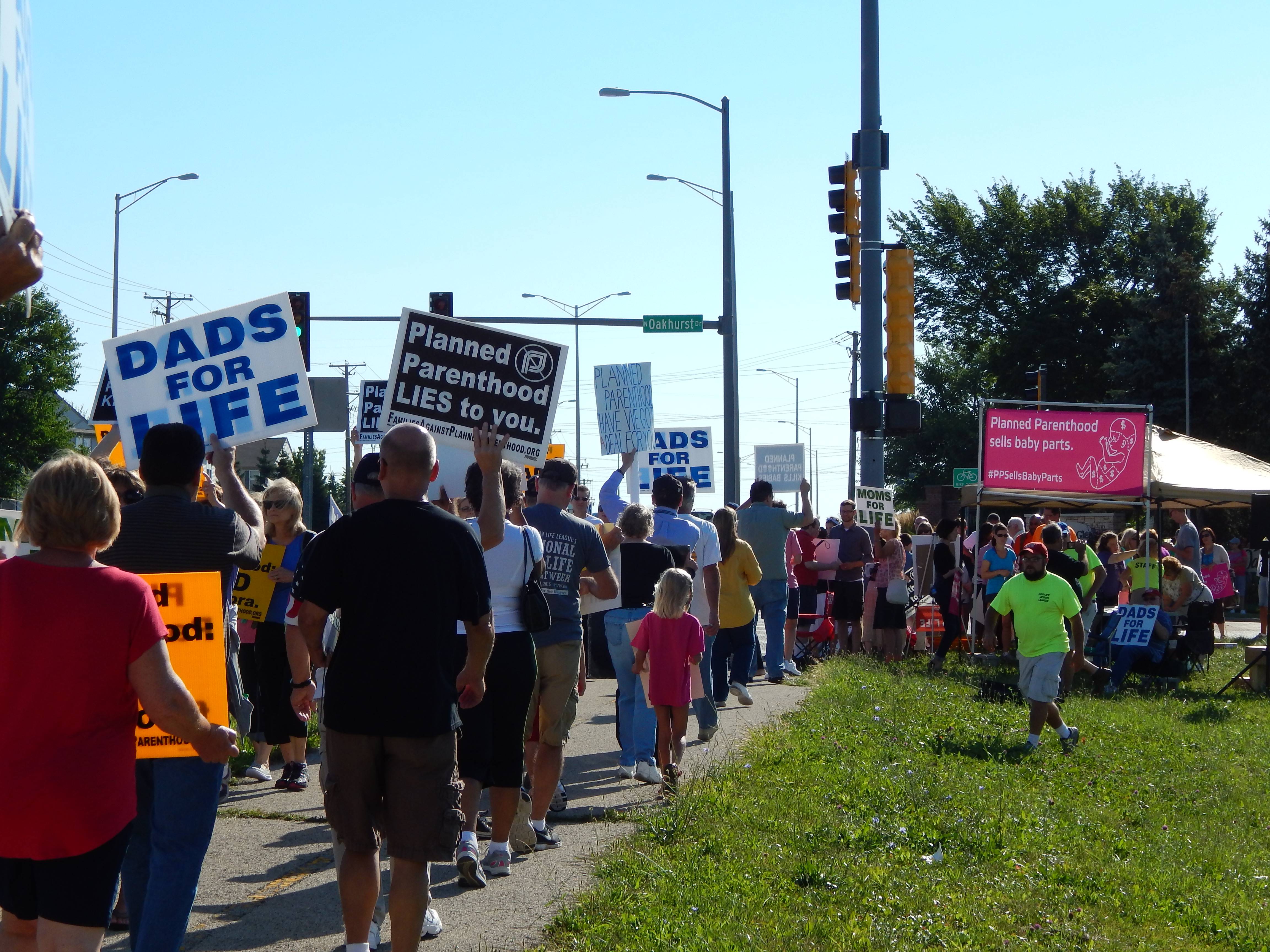 Across from the hedged Planned Parenthood compound protestors were praying and reading Scripture. As protestors walked the sidewalk along E. New York St., many were repeating the Rosary.
