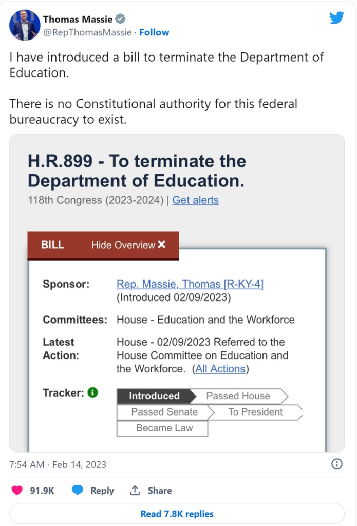Thomas Massie — We should dismantle the Dept of Education… – CITIZEN FREE PRESS