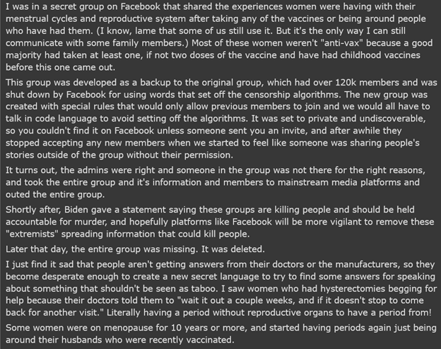 One day I heard of Fire and Flame from a neighbor who was fleeing the COVIDian and Woke persecutions. He said that he was going to the Remnant camp. One night I left everything behind when his car showed up. He drove me here.”