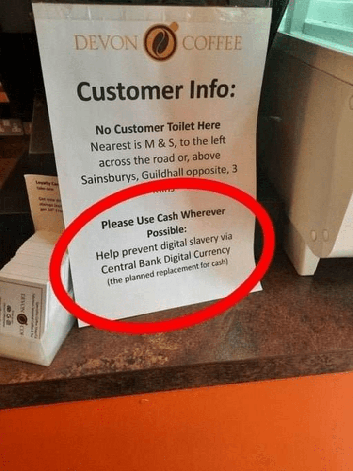 See a cashless society and Central Bank digital currency (CBDC) where purchases are monitored and financial accounts controlled by the government.